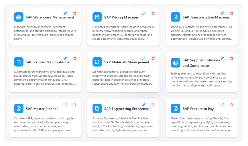 Procurement, Pricing, Inventory, Warehouse, and Compliance intelligence — built for ERP-heavy enterprises.