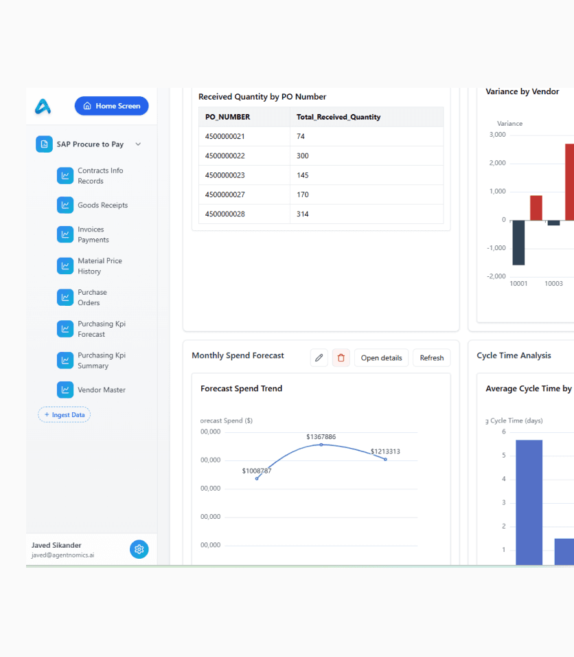 Procurement teams waste 30–40% of their time reconciling data across ERP, CRM, and supplier portals (Forrester). The Procurement Agent eliminates this friction.